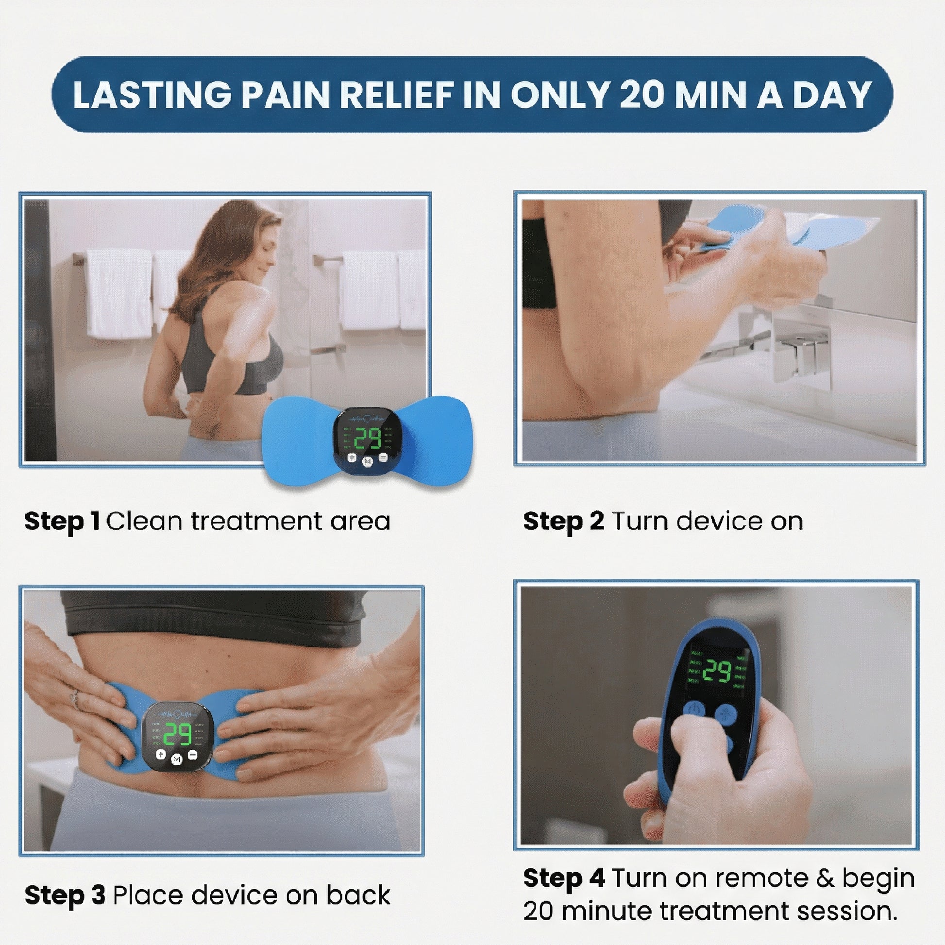 Place Pulse Pro over the painful area and start your 25-minute recovery session.